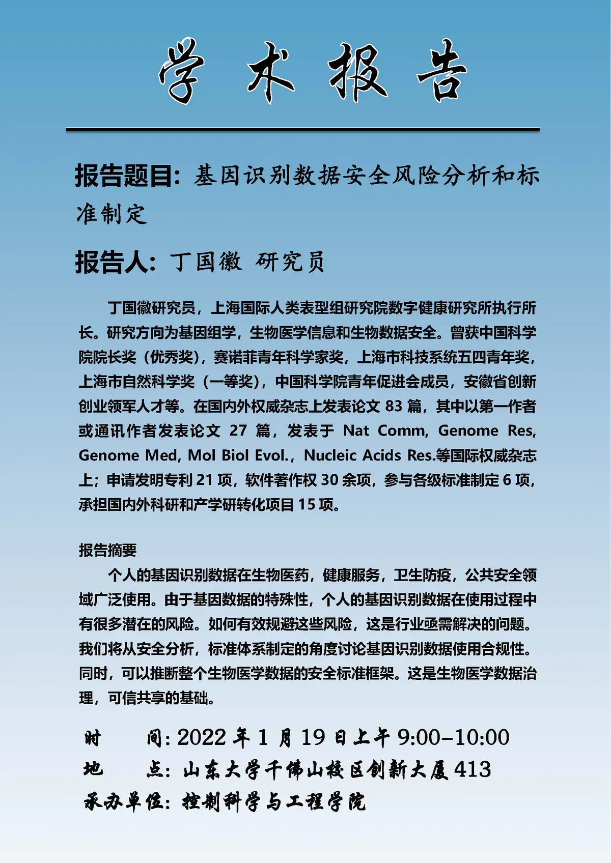 - This academic report was invited by my supervisor, Prof. Liu Zhi-Ping