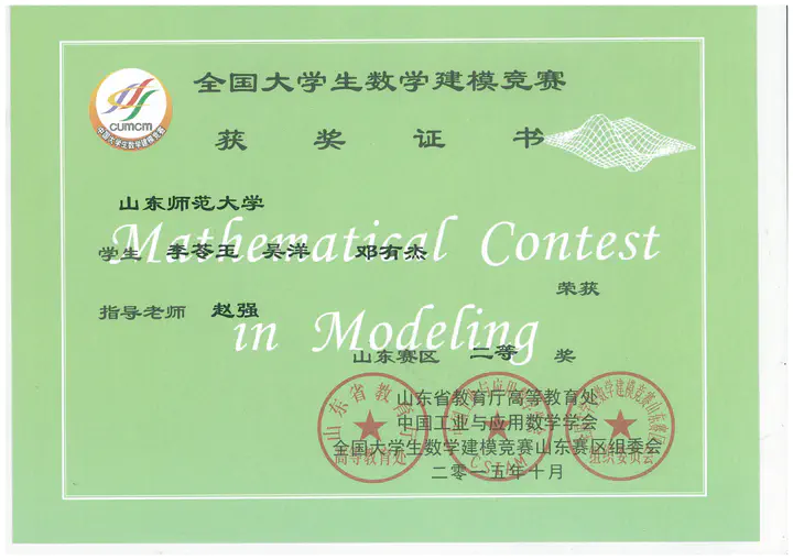 全国大学生数学建模竞赛, 二等奖(山东省)