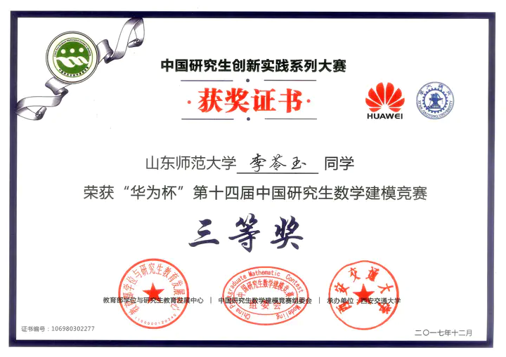 “华为杯”第十四届中国研究生数学建模竞赛,三等奖